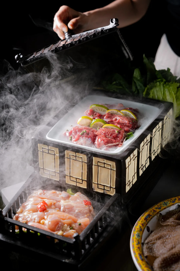 这家以牛腩为主的火锅品牌,用料讲究但客单价在80元左右,极具性价比。锅底多样,囊括虫草花菌王汤、川香麻辣、贵州红酸汤、花胶鸡汤等;素菜现摘现煮。门店设计,沿用“乾隆下江南”典故,趣味好玩的乾隆IP散落各处;招牌菜品餐具造型是一艘古色古香的船。