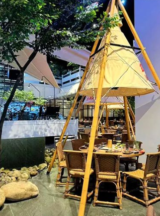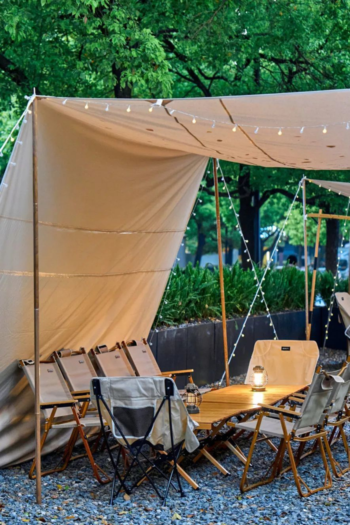 二店今年7月新开,落位江湖利星。门店延续黄姑山路店露营风格,环境和菜品全新升级,是一家目前杭城规模最大、产品最为丰富的,以露营为主题的平价大排档。