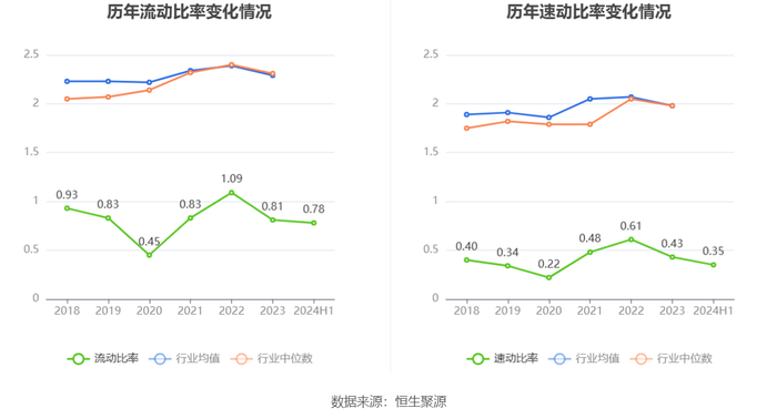 2024年上半年,公司流动比率为0.78,速动比率为0.35。