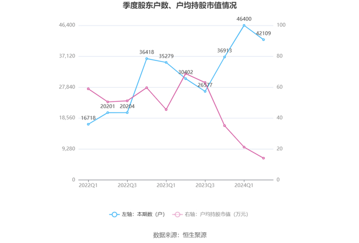 筹码集中度方面,截至2024年上半年末,公司股东总户数为4.21万户,较一季度末下降了4291户,降幅9.25%;户均持股市值由一季度末的21.25万元下降至14.10万元,降幅为33.65%。