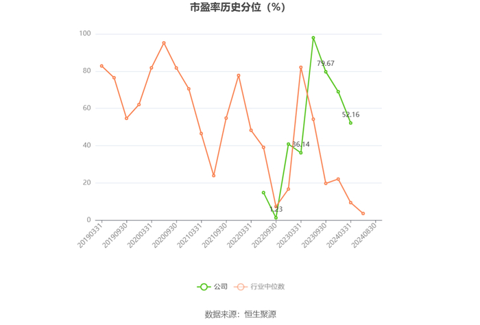 市盈率为负时,不显示当期分位数,会导致折线图中断。
