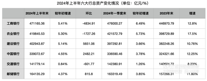 六大行是服务实体经济的主力军,上半年贷款合计增加68866.46亿元,但从季度来看,受实体经济需求减弱、整治资金空转等因素影响,二季度信贷增长相对乏力;存款受贷款增长乏力、规范手工补息等影响,二季度存款增长环比下降,且五大行均环比下降,个别减少超过1.5万亿。