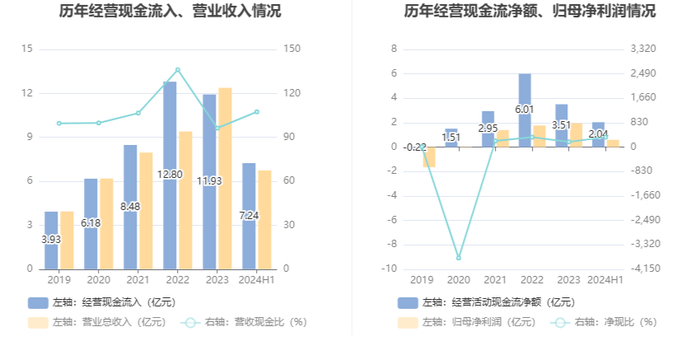 2024年上半年,公司营业收入现金比为107.41%,净现比为341.45%。