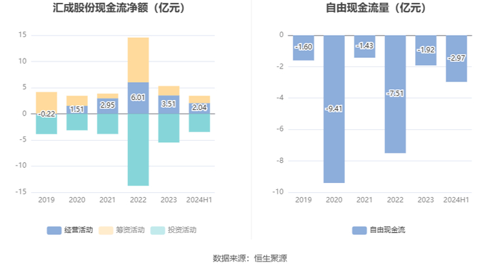 进一步统计发现,2024年上半年公司自由现金流为-2.97亿元,上年同期为0.24亿元。