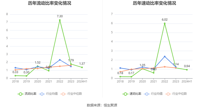 2024年上半年,公司流动比率为1.37,速动比率为0.94。