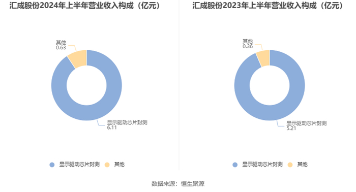 分产品来看,2024年上半年公司主营业务中,显示驱动芯片封测收入6.11亿元,占营业收入的90.74%。