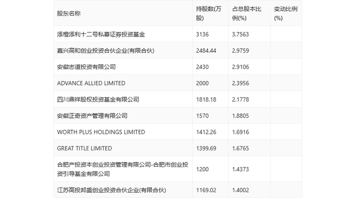 半年报显示,2024年上半年末公司十大流通股东中,新进股东为江苏高投邦盛创业投资合伙企业(有限合伙),取代了一季度末的深圳市旗昌投资控股有限公司。在具体持股比例上,添橙添利十二号私募证券投资基金持股有所上升,嘉兴高和创业投资合伙企业(有限合伙)持股有所下降。