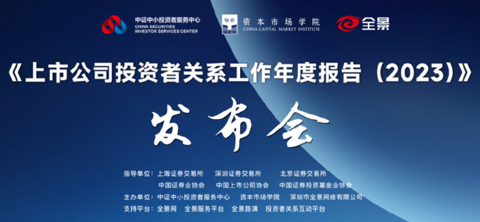8月30日,资本市场投资者关系领域重磅研究成果—《上市公司投资者关系工作年度报告(2023)》(以下简称“报告”)面向全市场进行了公开发布。报告由中证中小投资者服务中心、资本市场学院、深圳市全景网络有限公司联合编制,上海证券交易所、深圳证券交易所、北京证券交易所、中国证券业协会、中国上市公司协会、中国证券投资基金业协会共同提供指导和支持。
