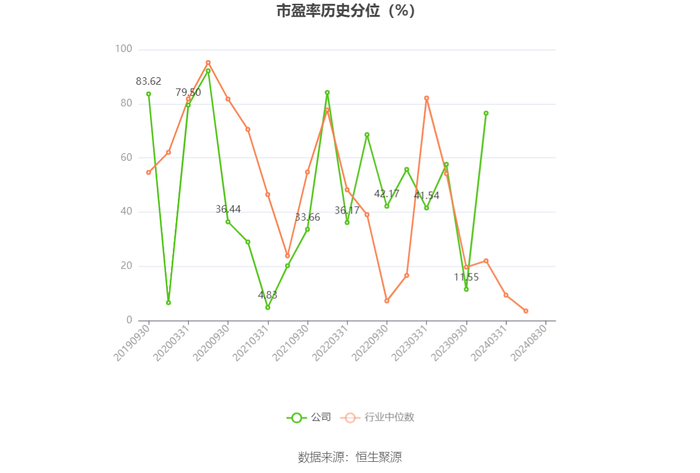 市盈率为负时,不显示当期分位数,会导致折线图中断。