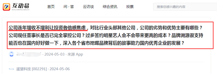 另外,今年五月,有投资者提问遥望科技:公司怎么看待连年增收不增利的局面,有没有具体有效的措施加以改善?公司对跨境电商直播业务有没有长期的规划?