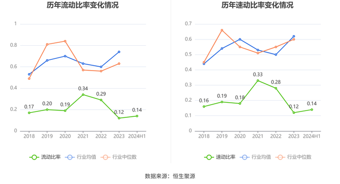 2024年上半年,公司流动比率为0.14,速动比率为0.14。