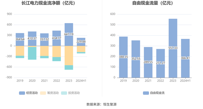 进一步统计发现,2024年上半年公司自由现金流为366.41亿元,相比上年同期下降4.78%。