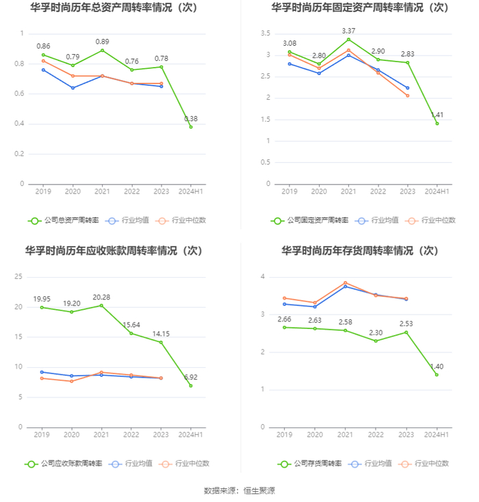 营运能力方面,2024年上半年,公司总资产周转率为0.38次,上年同期为0.43次(2023年上半年行业平均值为0.33次,公司位居同行业7/32);固定资产周转率为1.41次,上年同期为1.59次(2023年上半年行业平均值为1.19次,公司位居同行业9/32);公司应收账款周转率、存货周转率分别为6.92次、1.40次。