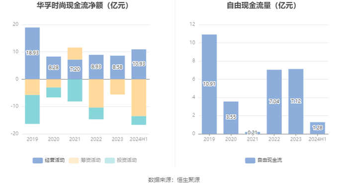 进一步统计发现,2024年上半年公司自由现金流为1.28亿元,相比上年同期下降93.70%。