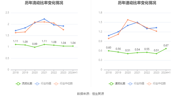 2024年上半年,公司流动比率为1.04,速动比率为0.67。