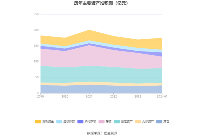 资产重大变化方面,截至2024年上半年末,公司存货较上年末减少26.04%,占公司总资产比重下降8.31个百分点;货币资金较上年末增加42.48%,占公司总资产比重上升5.90个百分点;预付款项较上年末增加112.77%,占公司总资产比重上升3.82个百分点;在建工程较上年末增加58.54%,占公司总资产比重上升1.49个百分点。
