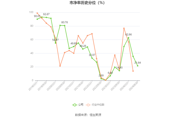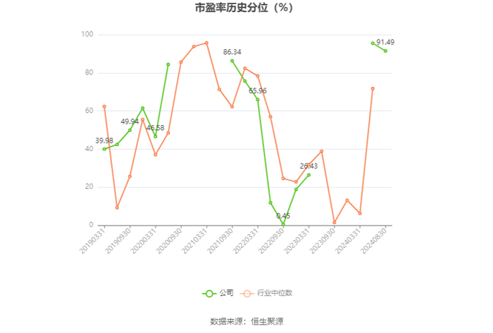 市盈率为负时,不显示当期分位数,会导致折线图中断。文章来源:中国证券报·中证网文章作者:沈楠原标题:华孚时尚:2024年上半年净利润4480.46万元 同比下降44.96%