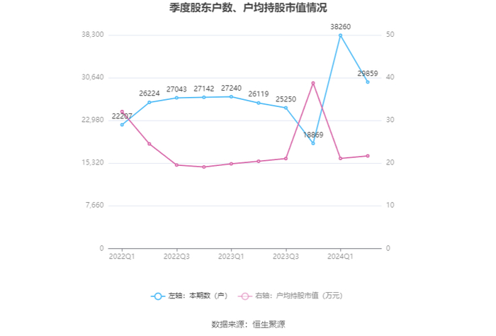 筹码集中度方面,截至2024年上半年末,公司股东总户数为2.99万户,较一季度末下降了8401户,降幅21.96%;户均持股市值由一季度末的21.11万元上升至21.70万元,增幅为2.79%。