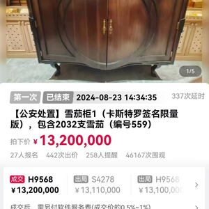 某互联网拍卖平台的相关拍卖界面显示,有27人缴纳了15万元的保证金后报名。这场拍卖于8月22日上午10点开始,150万元起拍,经历337次延时、442次出价,最终于次日下午2点34分结束,成交价1320万元。