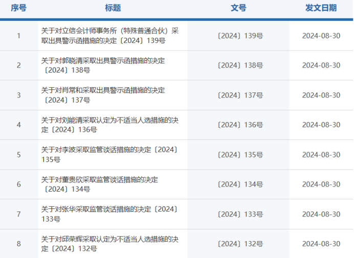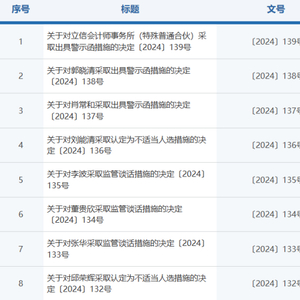 1.立信会计师事务所(特殊普通合伙)审计项目执业中存在三大违规问题,被采取出具警示函的行政监管措施。
