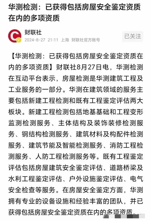 这个华测检测是什么背景?凭什么这么快就拿到了房屋检测资质?