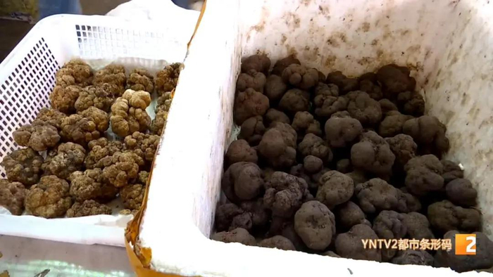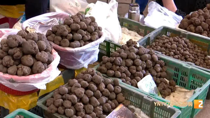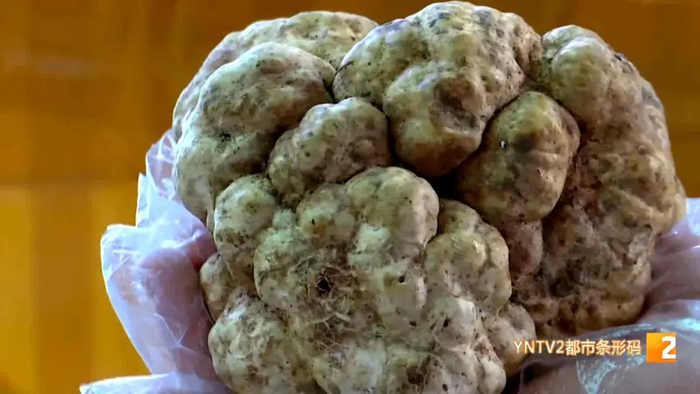 云南木水花野生菌交易中心内,一筐刚到货的白松露吸引了不少市民和游客的关注。近10厘米宽、重2.8两,有的白松露已经跟苹果差不多大小,单块售价上千元。