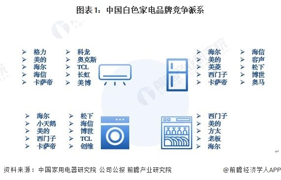 1、中国白色家电行业竞争派系