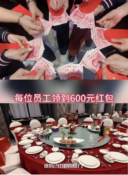 这次宴会上,单志敏请的都是自家员工。几百名打工人,每人现场收到600元红包,让不少打工人直呼羡慕。