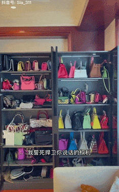 从苗苗发的视频里可以看到,她的衣帽间里全是各种名牌包包:
