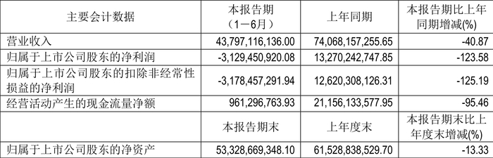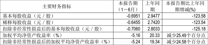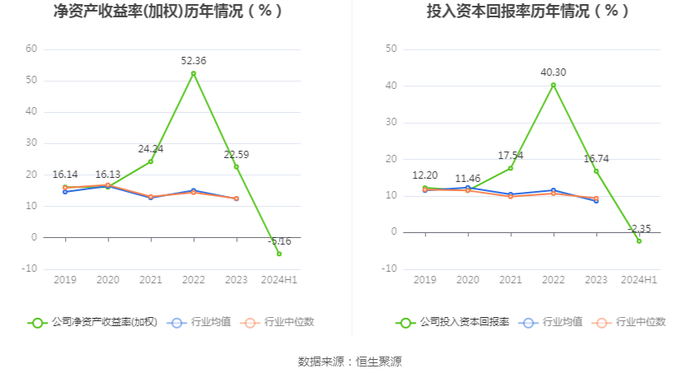 数据显示,2024年上半年公司加权平均净资产收益率为-5.16%,较上年同期下降25.49个百分点;公司2024年上半年投入资本回报率为-2.35%,较上年同期下降18.27个百分点。