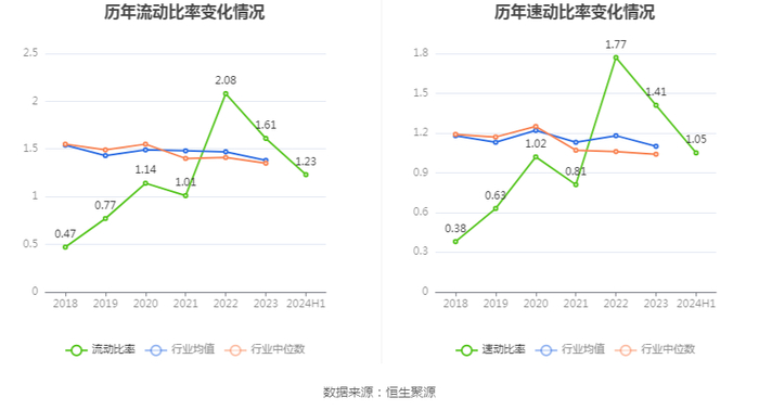 2024年上半年,公司流动比率为1.23,速动比率为1.05。