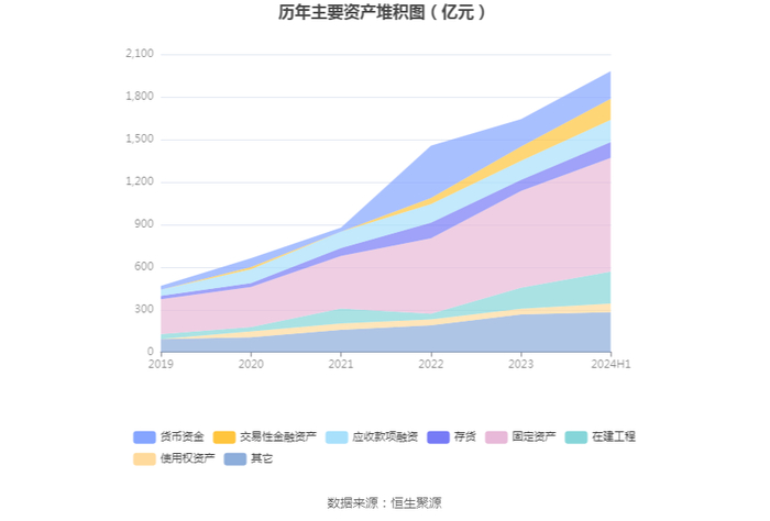 资产重大变化方面,截至2024年上半年末,公司在建工程较上年末增加52.69%,占公司总资产比重上升2.39个百分点;货币资金较上年末增加0.31%,占公司总资产比重下降1.99个百分点;交易性金融资产较上年末增加47.99%,占公司总资产比重上升1.39个百分点;其他非流动资产较上年末减少32.80%,占公司总资产比重下降1.37个百分点。