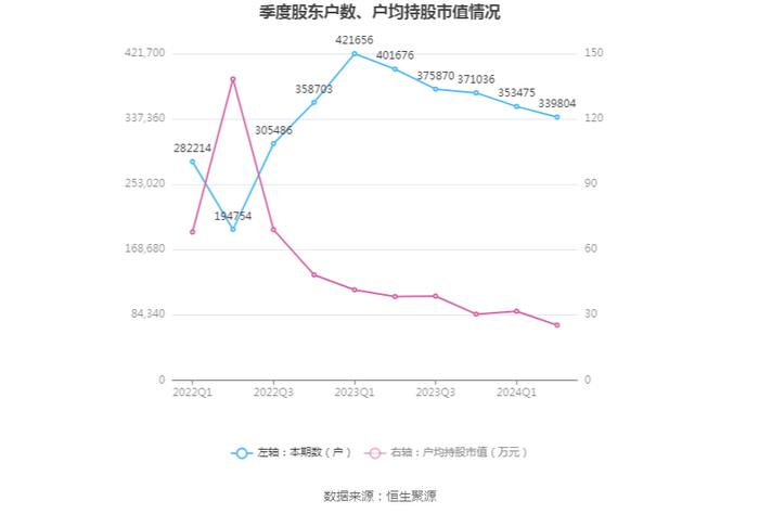 筹码集中度方面,截至2024年上半年末,公司股东总户数为33.98万户,较一季度末下降了1.37万户,降幅3.87%;户均持股市值由一季度末的31.68万元下降至25.32万元,降幅为20.08%。