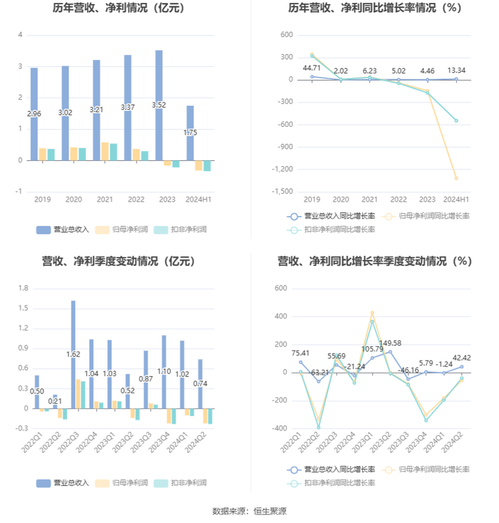 数据显示,2024年上半年公司加权平均净资产收益率为-3.12%,较上年同期下降2.79个百分点;公司2024年上半年投入资本回报率为-1.37%,较上年同期下降1.99个百分点。