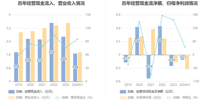 2024年上半年,公司营业收入现金比为95.54%。