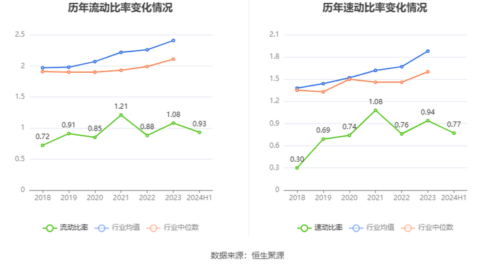 2024年上半年,公司流动比率为0.93,速动比率为0.77。