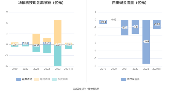 进一步统计发现,2024年上半年公司自由现金流为-1.20亿元,上年同期为-1.82亿元。