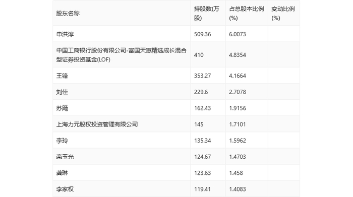 半年报显示,2024年上半年末公司十大流通股东中,新进股东为刘佳、李家权,取代了一季度末的全国社保基金一一四组合、安徽国富产业投资基金管理有限公司。在具体持股比例上,苏飏、李玲持股有所上升,中国工商银行股份有限公司-富国天惠精选成长混合型证券投资基金(LOF)、王锋持股有所下降。