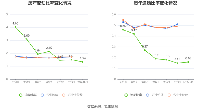 2024年上半年,公司流动比率为1.34,速动比率为0.16。