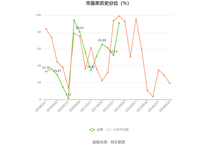 市盈率为负时,不显示当期分位数,会导致折线图中断。