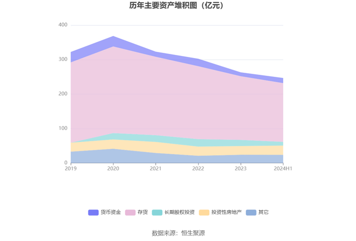资产重大变化方面,截至2024年上半年末,公司长期股权投资较上年末减少39.20%,占公司总资产比重下降2.38个百分点;货币资金较上年末增加30.99%,占公司总资产比重上升1.71个百分点;投资性房地产较上年末增加6.01%,占公司总资产比重上升1.27个百分点;存货较上年末减少7.85%,占公司总资产比重下降1.14个百分点。