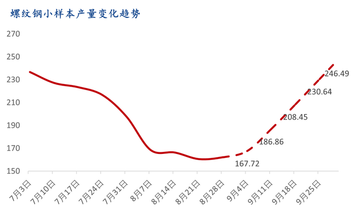 3、 9月末螺纹钢产量或将恢复至规模性停产前供给水平。