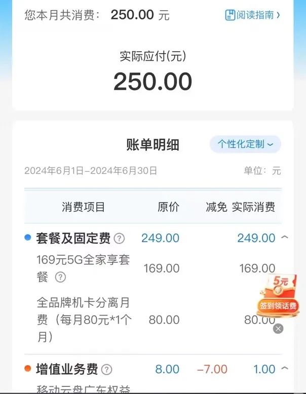 然而,吊诡的是,在移动工作人员口口声声说“取消号码绑定”之后,小洋的6月话费账单又被多扣了80元。据小洋透露,7月初她通过广东移动官方小程序查询6月话费账单时,发现仍然被多扣了80元“机卡分离月费”。而且令小洋感到气愤的是,被多扣费之后,还导致手机话费余额不足收到了中国移动10086发来的“欠费停机提醒”。