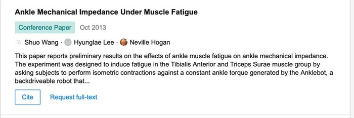 至今还可以在MIT的网站上看到王硕和导师共同合著:“使用机器人设备研究如何缓解脚踝肌肉疲劳”报告。