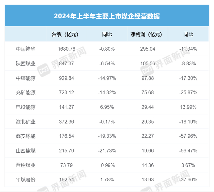 上半年,煤炭上市公司业绩集体回落。
