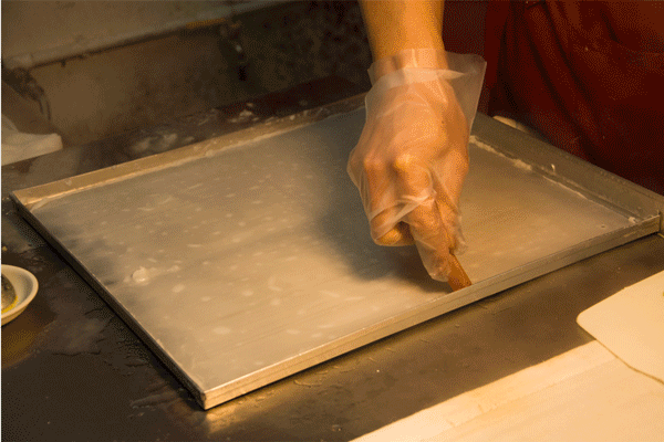 甜味的肠粉不单口感好,而且色泽金黄,金黄的浆水在洁白的肠粉上流淌,晶莹剔透,甚是迷人,再加上潮汕特有的“菜脯粒”作为甜浆的佐料,还没有品尝就垂涎三尺。