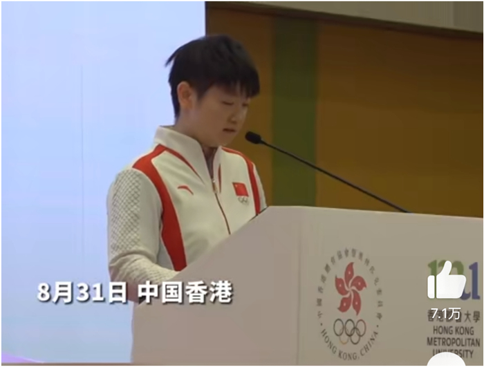 1、孙颖莎说球衣上的国旗大于姓名 日前,孙颖莎等运动员前往香港都会大学参加青年人交流活动。孙颖莎表示,穿上国家队球衣那一刻,意识到胸前的国旗永远大于背后的姓名。“如果说自己的名字意味着一种光荣,那么国旗则代表着一种责任,一种使命,值得我们付出一切去捍卫,去战斗。”(中新网)