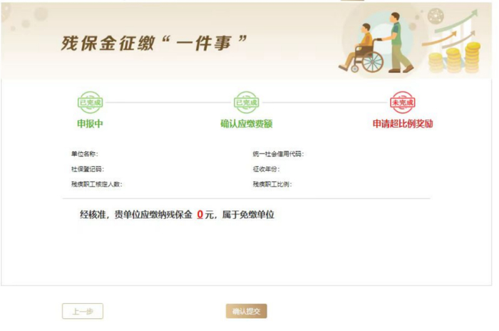 1.无需缴纳残保金的单位,点击“确认提交”后进入“申报成功”页面。
