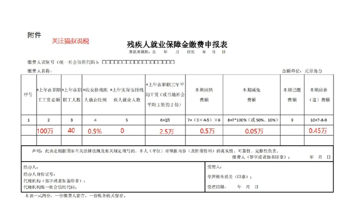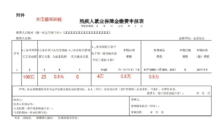 案例一:A公司2023年工资总额100万,职工人数25人,未安排残疾人,如何申报残疾人就业保障金?