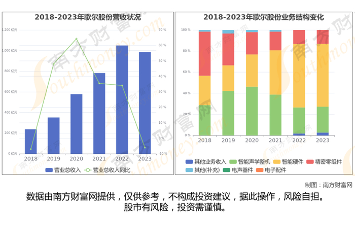 歌尔股份于2008年5月22日在深圳证券交易所上市,股票代码002241。公司主营业务为精密零组件业务、智能声学整机业务和智能硬件业务。